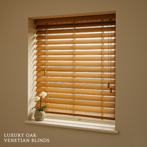 Our Oak Basswood Venetian Blinds combine real timber quality with practical design. Available in standard sizes or cut-to-size options, these blinds provide a reliable and affordable way to control light and privacy in any room.