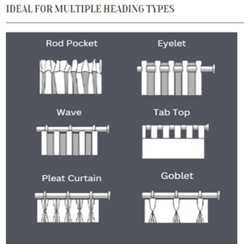 Ideal for eyelet, rod-pocket, tab-top, pleated, wave, or goblet heading styles.