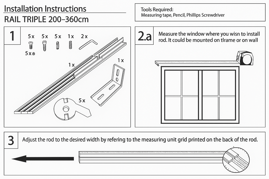 (For Triple Rail Panel Track 200–360 cm)