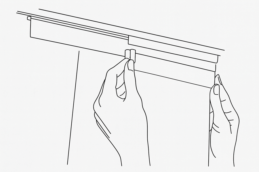 Ensure each panel hangs straight and the bottom weight bar is installed.