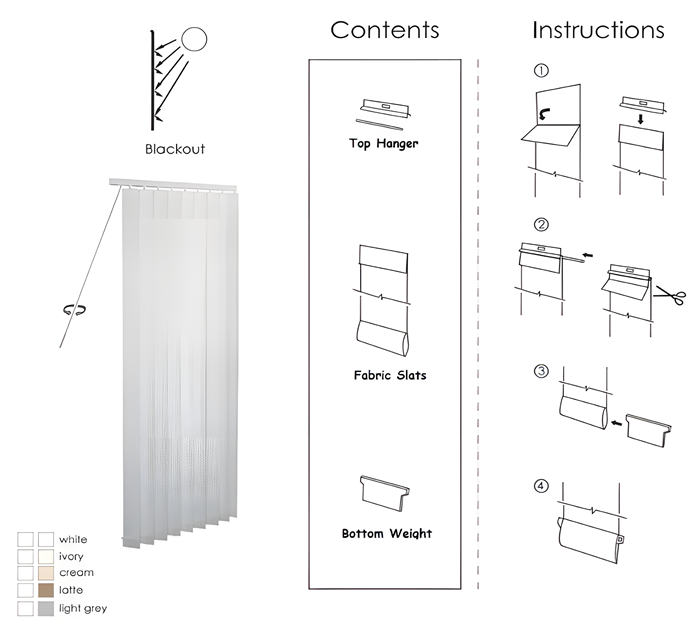 Your vertical blind features a DIY fold-down height adjustment design, allowing you to customise the drop easily without sewing.